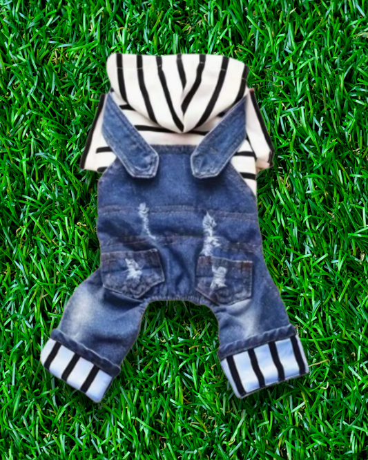 Distressed Denim Dog Overalls w/ Shirt