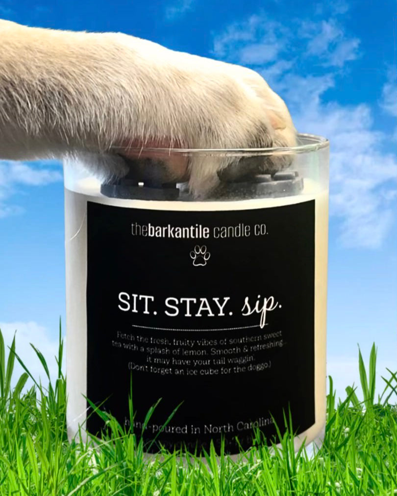Our exclusive line of dog-themed candles is inspired by our favorite four-legged friends, with playful names and tail-wagging fragrances like “Lemon Push-Pup,” “Paws + Relax,” and “Sit. Stay. Sip.” Hand-poured in NC and only available at The Barkantile.